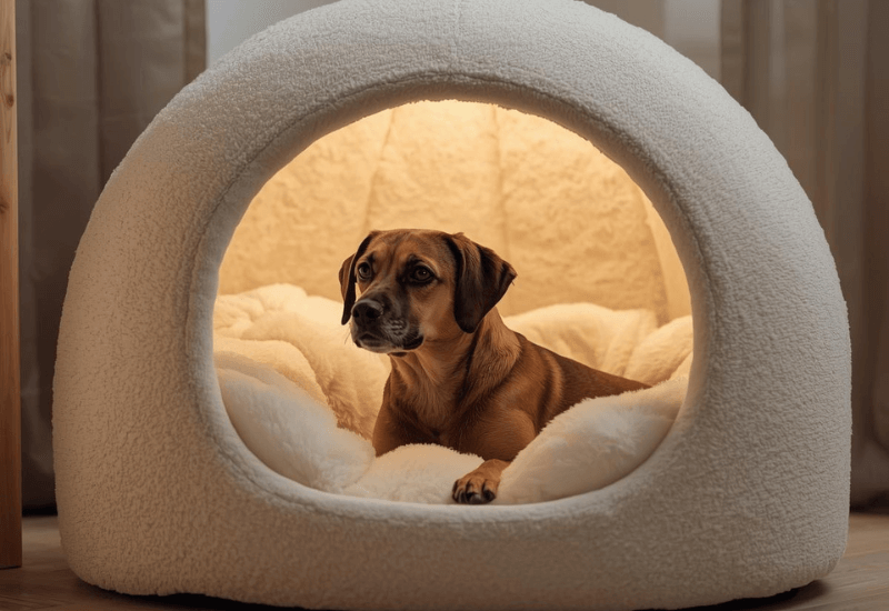 このため、雷などの大きな音に怯えているときや、眠りにつく前など、犬は自然に狭い空間に身を置きたがります。