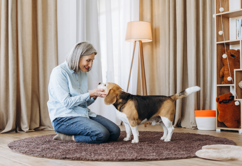 自分で立ち上がることが難しくなったシニア犬を立たせてあげるだけでも、適度な運動になります。