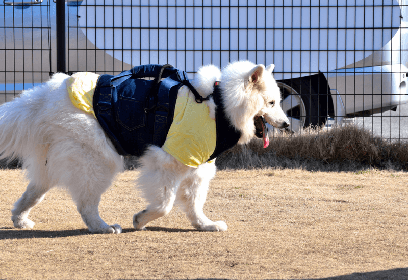 後ろ足の踏ん張りが弱くなったシニア犬には、歩行補助グッズを活用することで安全に運動を続けやすくなります。