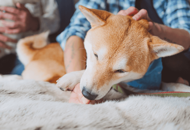 老犬のイボを撫でる飼い主